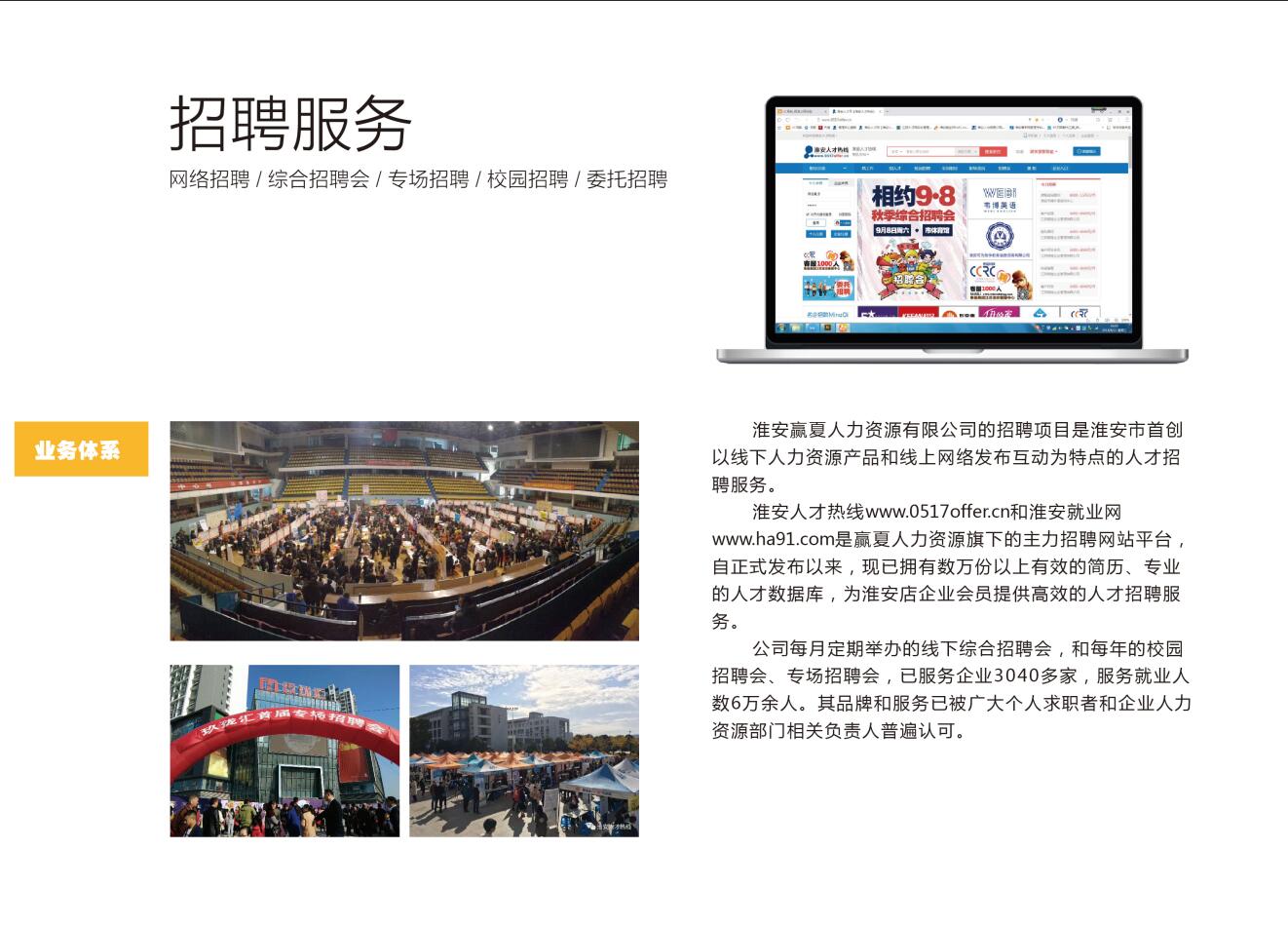 淮安贏夏人力資源有限公司的招聘項(xiàng)目是淮安市首創(chuàng)以線下人力資源產(chǎn)品和線上網(wǎng)絡(luò)發(fā)布互動(dòng)為特點(diǎn)的人才招聘服務(wù)。