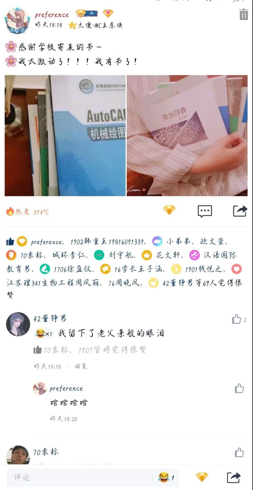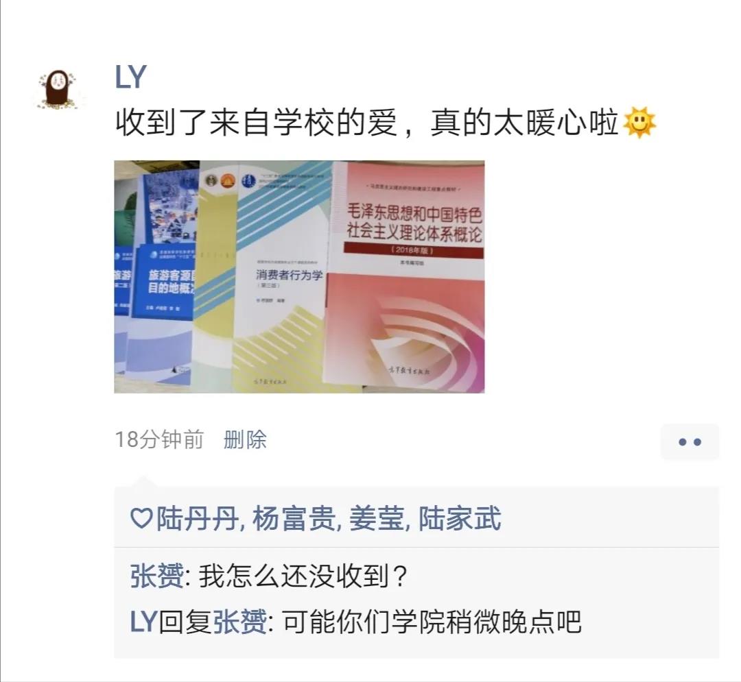 今日,淮師同學(xué)紛紛在朋友圈里花式“曬書”“隔空不隔愛,溫暖送到家”