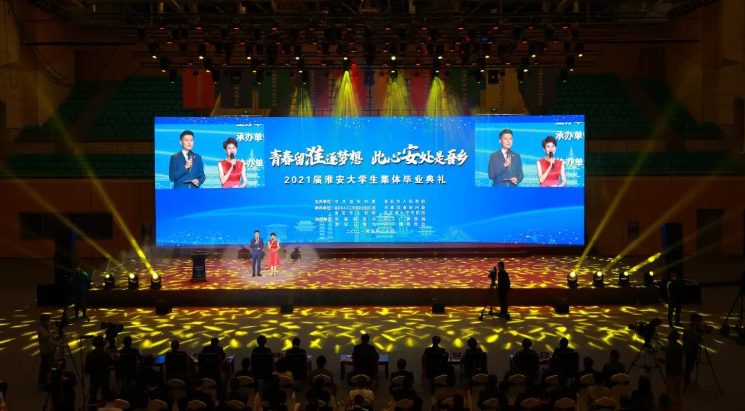 5月20日,2021屆淮安大學(xué)生集體畢業(yè)典禮在淮陰工學(xué)院枚乘路校區(qū)體育館舉行?;顒?dòng)以“青春留淮逐夢(mèng)想 此心安處是吾鄉(xiāng)”為主題,共分“淮”抱青春、“安”逐夢(mèng)想兩個(gè)篇章。中共淮安市委副書記、淮安市人民政府市長陳之常,市委常委、組織部長孫虎,市人大常委會(huì)副主任、黨組副書記劉華,市政府副市長王紅紅,市政協(xié)副主席王莉莉,淮陰工學(xué)院黨委書記趙炳起,淮陰師范學(xué)院黨委書記朱漢清,淮陰工學(xué)院校長孫愛武,江蘇財(cái)經(jīng)職業(yè)技術(shù)學(xué)院黨委書記韓香云、淮陰工學(xué)院副校長朱曉文出席典禮?;顒?dòng)現(xiàn)場(chǎng)通過線上方式向全市大學(xué)生進(jìn)行網(wǎng)絡(luò)直播。