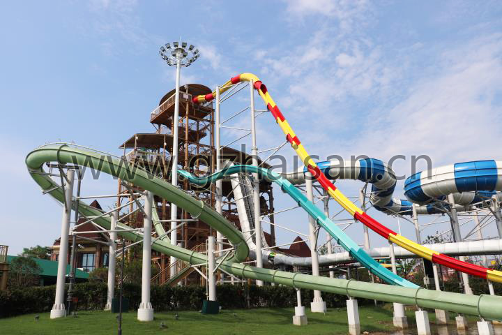 蘇州灣·夢(mèng)幻水世界景區(qū)坐落于蘇州東太湖生態(tài)旅游度假區(qū)內(nèi),總規(guī)劃面積為12.1萬(wàn)平米,海山游樂(lè)獨(dú)家提供該項(xiàng)目策劃規(guī)劃、主題景觀設(shè)計(jì),以及部分設(shè)備制造安裝服務(wù)。在2016年被省旅游局評(píng)為2017年省級(jí)重點(diǎn)旅游項(xiàng)目,同時(shí)被省發(fā)改委評(píng)為2017年江蘇省重大投資項(xiàng)目,日最大承載量為24323人,瞬間最大承載量為14351人。于2019年6月28日盛大開(kāi)園。蘇州灣·夢(mèng)幻水世界是以馬達(dá)加斯加熱帶雨林風(fēng)情為主題,依托太湖天然水系資源,將豐富的熱帶雨林景觀與激情探險(xiǎn)相結(jié)合,打造出國(guó)內(nèi)首家實(shí)景式馬達(dá)加斯加熱帶雨林水上樂(lè)園。水上樂(lè)園設(shè)計(jì)注重?cái)z取馬達(dá)加斯加熱帶雨林地理風(fēng)貌、人文風(fēng)情、建筑藝術(shù)、生態(tài)景觀等鮮明的主題元素,使情景體驗(yàn)與度假休閑有機(jī)結(jié)合與有效實(shí)現(xiàn),營(yíng)造出極具熱帶風(fēng)情特色的水上休閑世界。