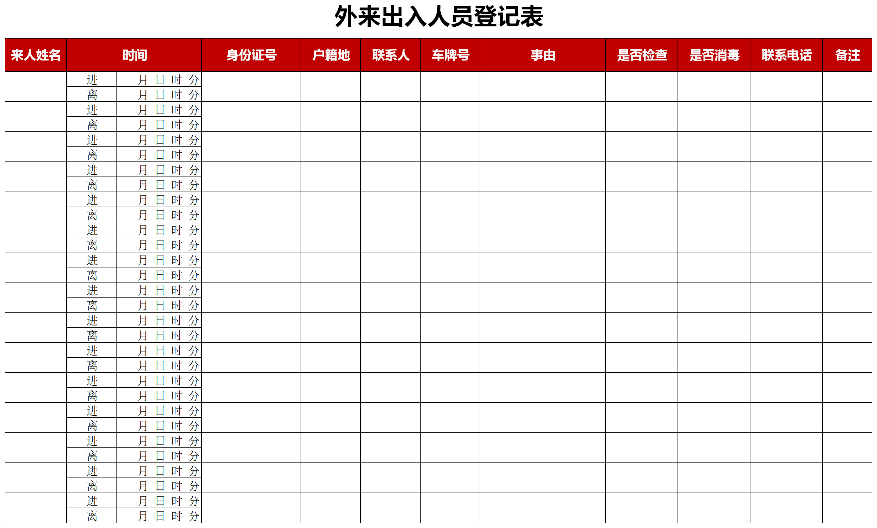 疫期外來出入人員登記表