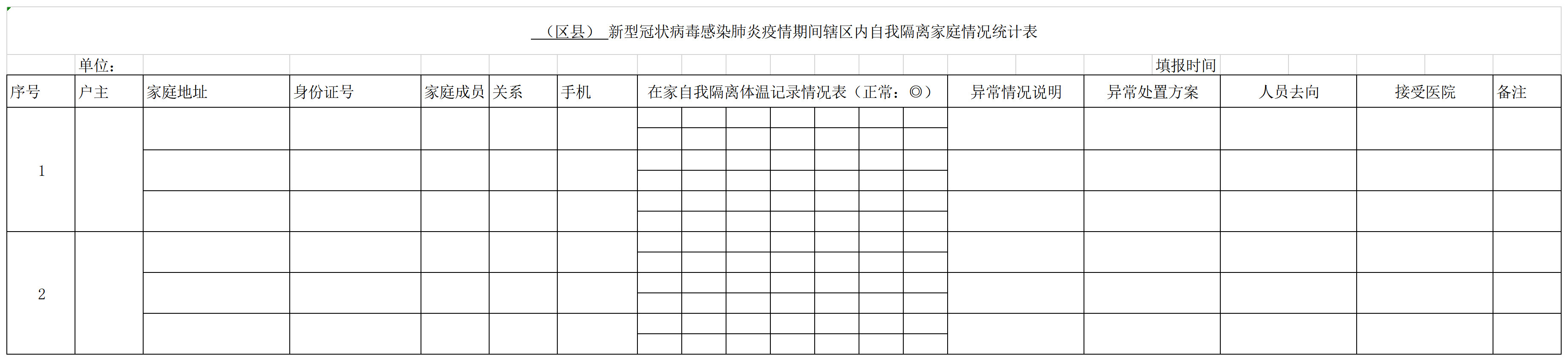 疫期自我隔離家庭情況統(tǒng)計表