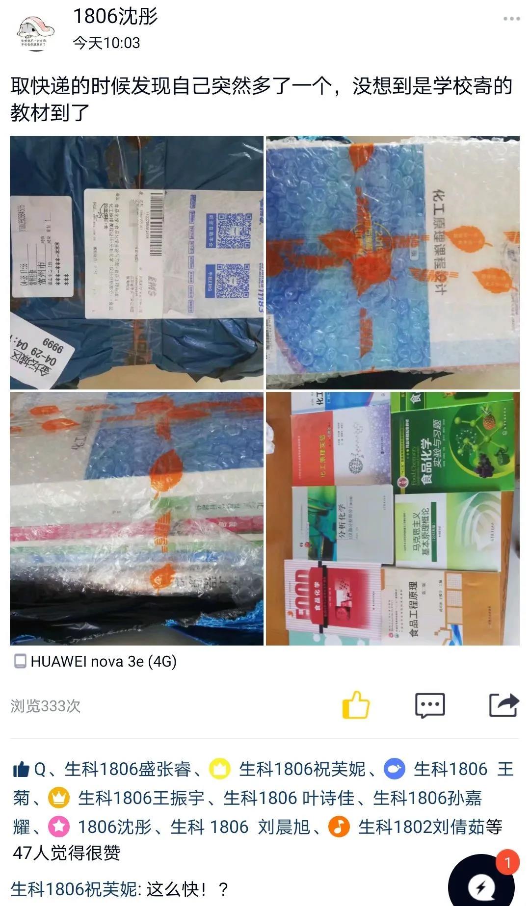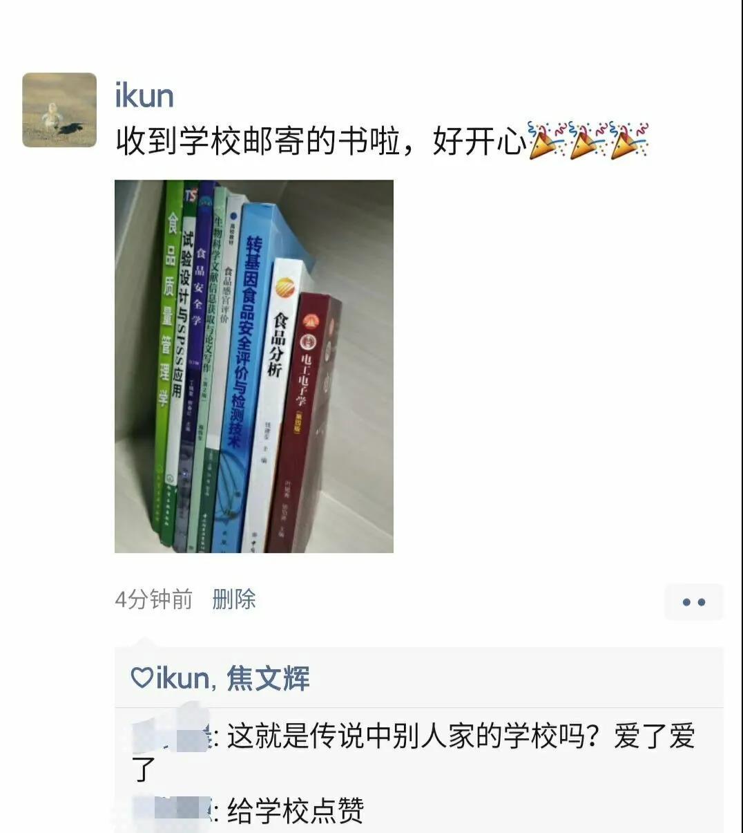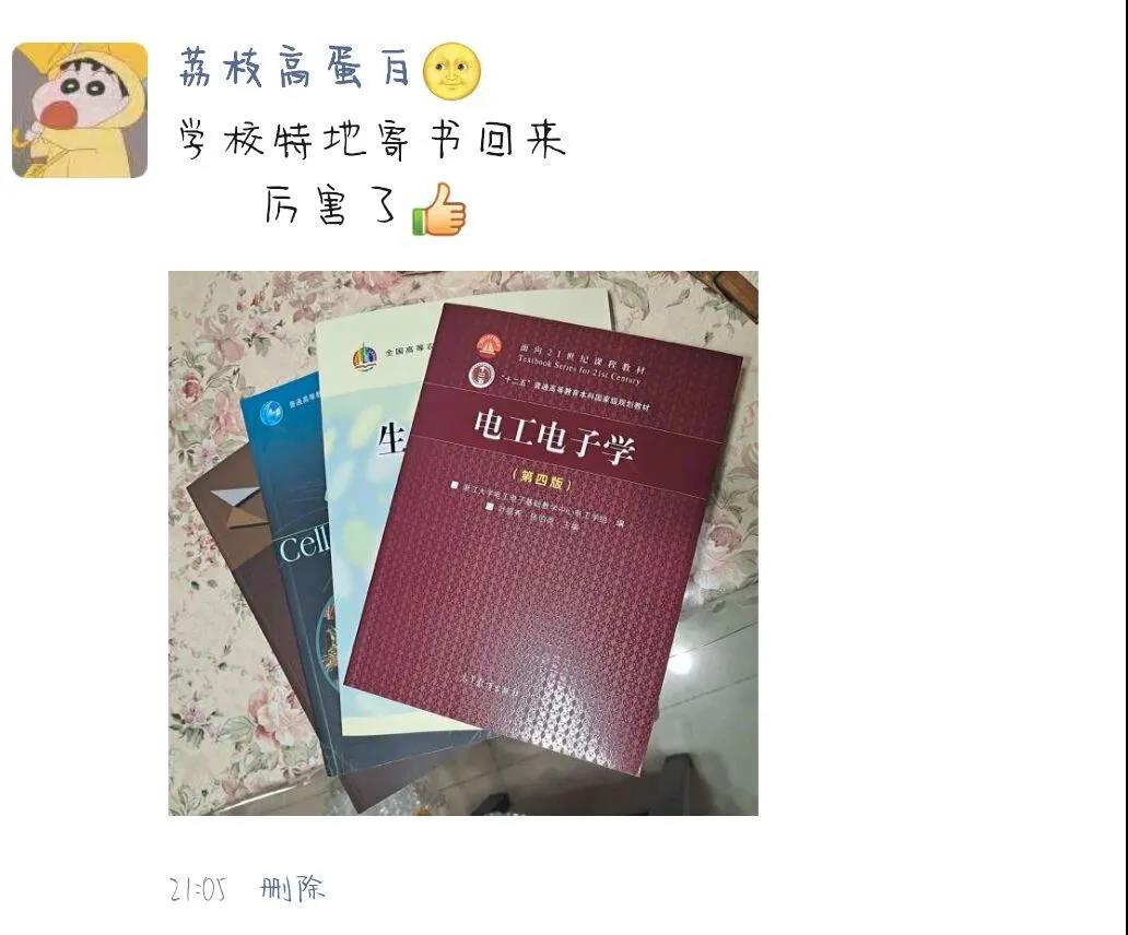 今日,淮師同學(xué)紛紛在朋友圈里花式“曬書”“隔空不隔愛,溫暖送到家”