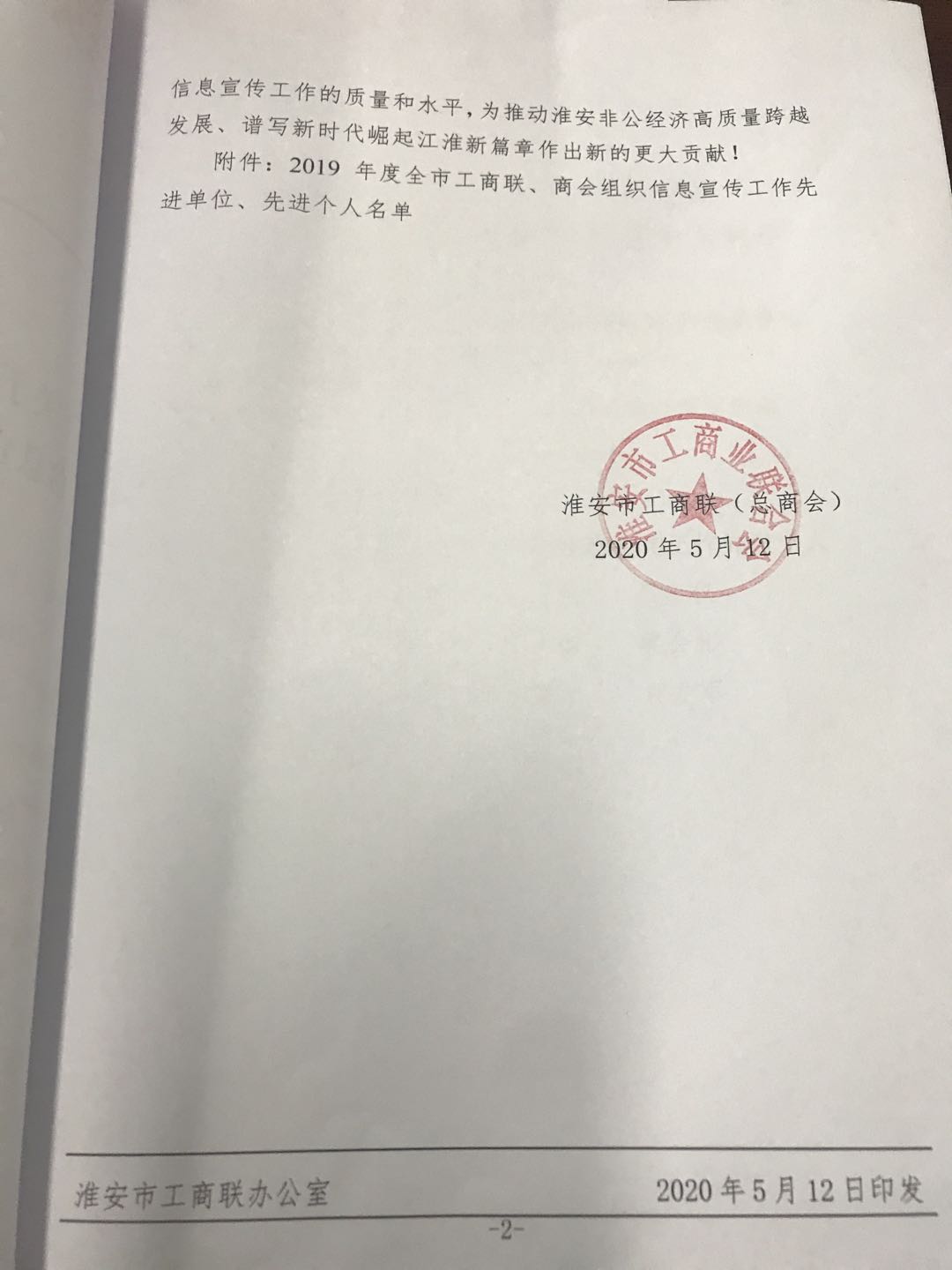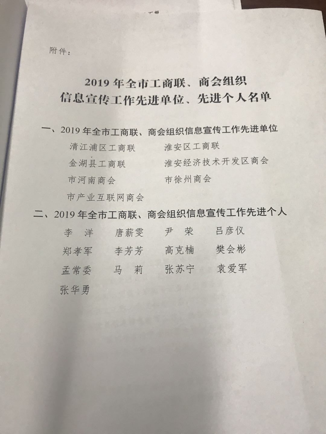贏夏人才、淮安人才熱線CEO孟常委榮獲2019年度淮安市商會組織信息宣傳工作先進個人