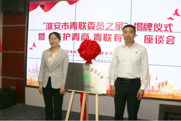 會上,李義翠和朱桂前為“淮安市青聯(lián)委員之家”揭牌。