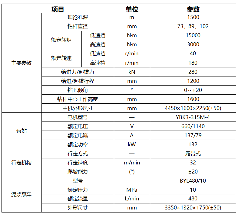 2、采用大功率主機(jī),動(dòng)力頭轉(zhuǎn)矩大、給進(jìn)機(jī)構(gòu)起拔力大,大大提高了在施工過程中處理抱鉆、卡鉆等事故的能力;