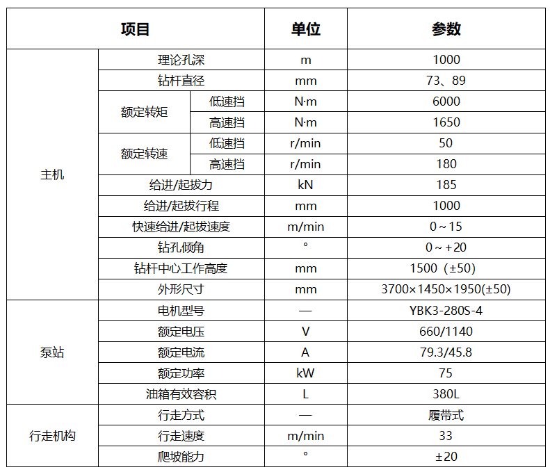 ZYWL-6000D煤礦用履帶式全液壓定向鉆機參數(shù)表